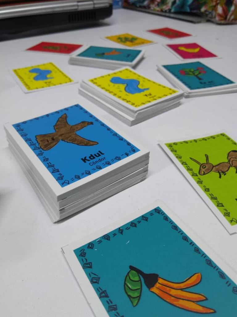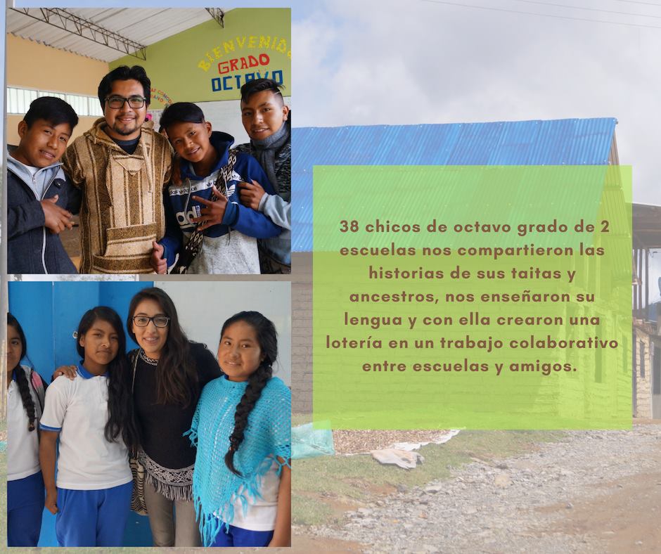 38 niñas y niños de octavo grado de dos colegios compartieron a través de dibujos las historias de sus taitas y ancestros, nos enseñaron su lengua y con ese conocimiento se generó una lotería colaborativa ente escuelas y amigos.