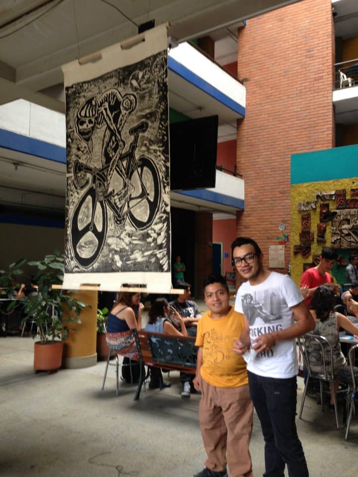 Existe cierta relación entre el taller del artista y el del ciclista, entre el metal y la madera de la matriz sobre la que dibuja y el acero del cuadro de su bicicleta, entre la tinta y la grasa en las manos, entre los buriles para dibujar y las herramientas para cambiar piezas. Egresado de la Escuela Nacional de Artes Plásticas de la Universidad Nacional Autónoma de México, Roberto Carlos, además de pintar y pedalear se abre camino como grabador, una disciplina con tradición en la plástica mexicana que en materia ciclista cuenta con las obras de José Guadalupe Posada: “Los periodistas” y “La Muerte en bicicleta”.
