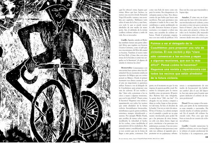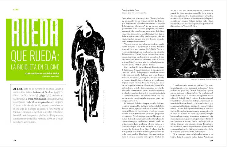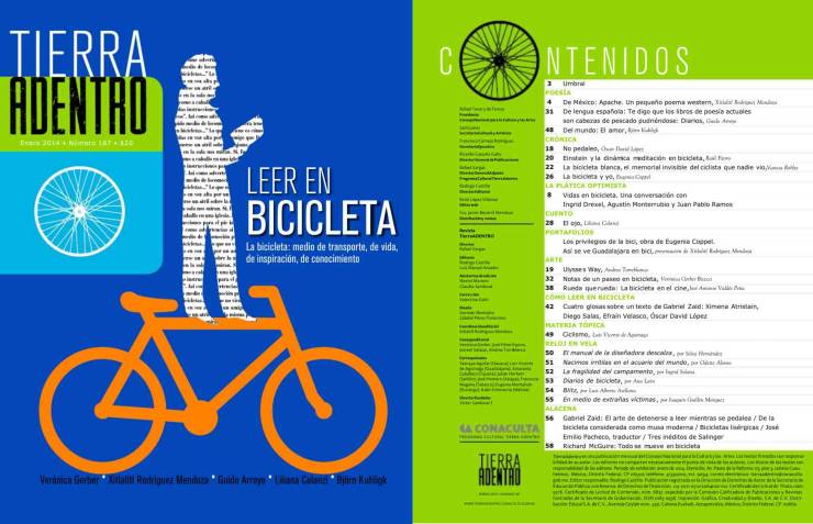 Revista Tierra Adentro “Leer en bicicleta, la bicicleta, medio de transporte, de vida, de inspiración, de conocimiento» Número 187, Enero 2014.